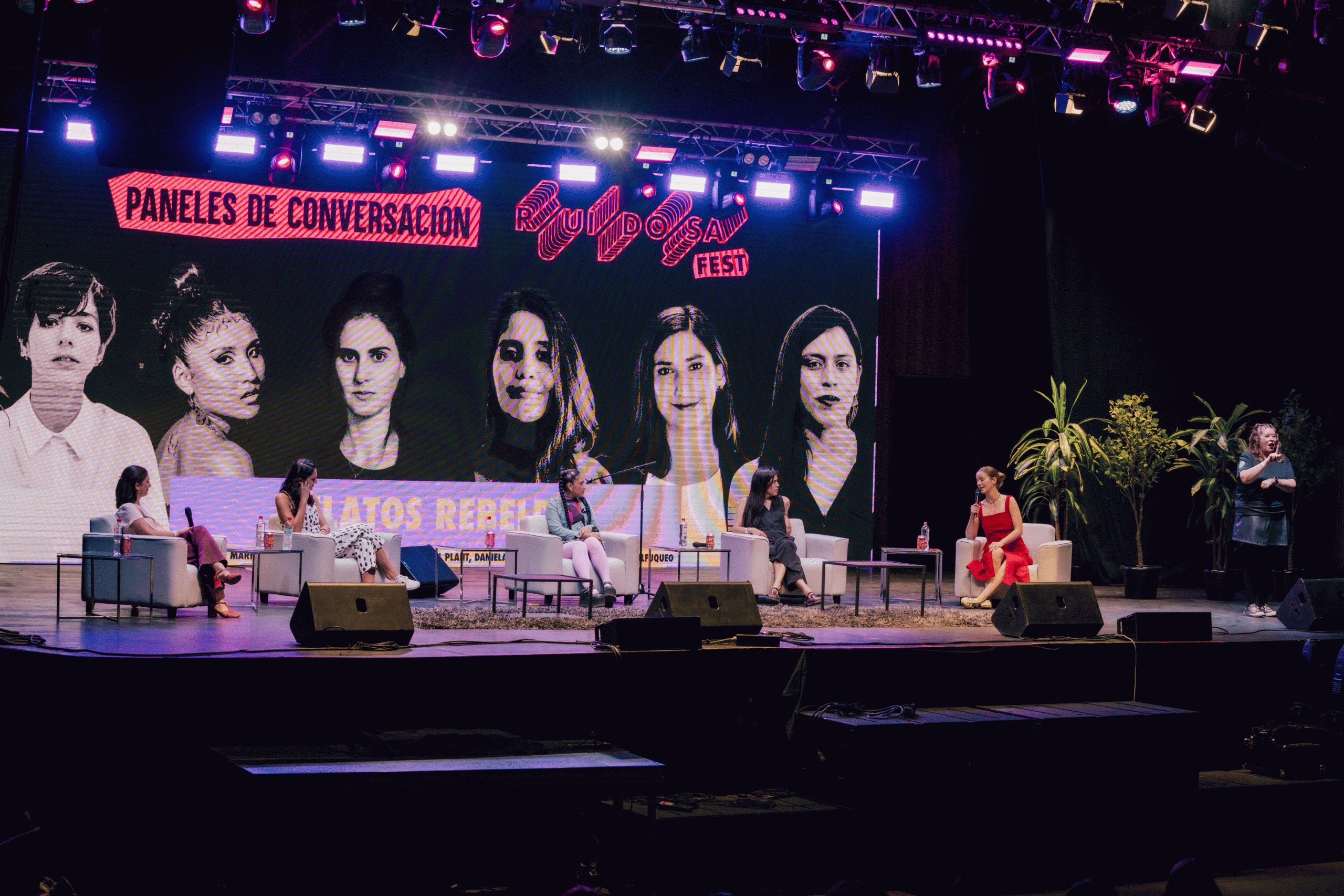 Finalmente “Relatos Rebeldes” fue el último de los conversatorios que al igual que los anteriores, contó con una alta demanda de asistencia, haciendo chico el Teatro Cúpula, lo que incluso dejó gente afuera. Las panelistas fueron Isabel Plant, Rocío Jadue, Seba Calfuqueo, Daniela Catrileo y Milena Warthon, cantante peruana ganadora de la competencia folclórica del Festival de Viña del Mar 2023. Procesos creativos, el valor de las historias femeninas y el desafío de visibilizar las pasiones y las visiones de cada una respecto del desarrollo de sus proyectos profesionales, fueron el núcleo de la conversación.